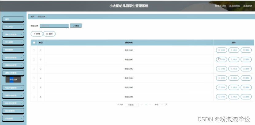 课程分类管理,在课程分类管理页面可以对索引,课程分类等内容进行详情、修改或删除等操作,如图5-10所示。