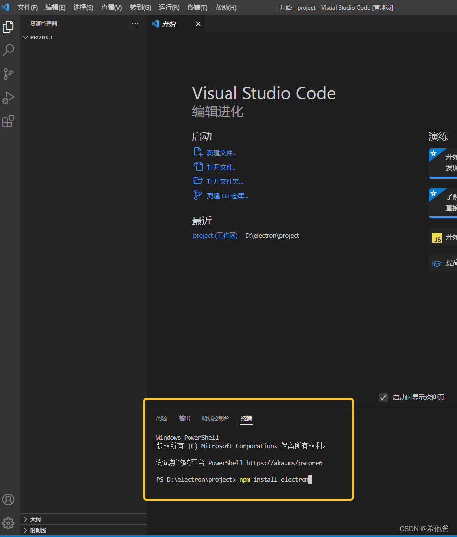 3.打开终端运行npm install electron