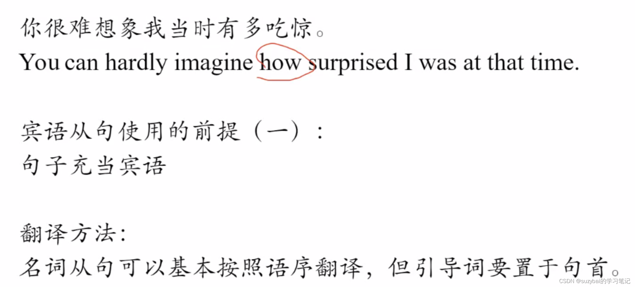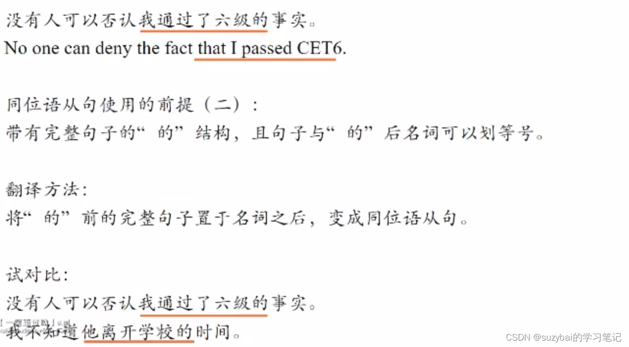 翻译方法:名词从句可以基本按照语序翻译,但引导词要置于句首。