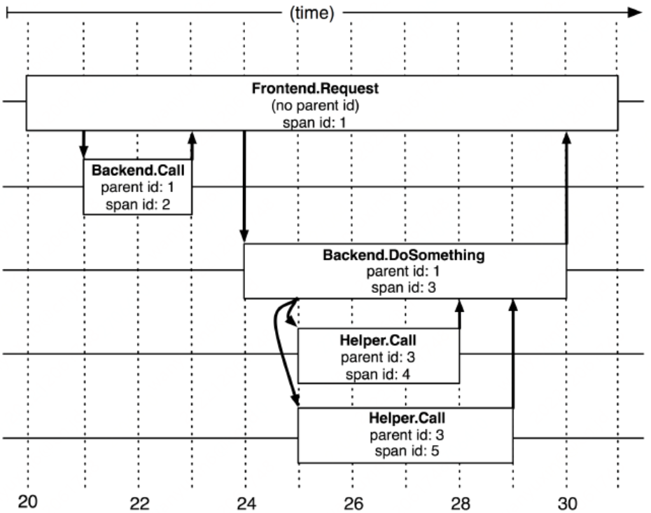 为了到达这两个⽬的地,⼏乎所有的调⽤链系统都会有以下两个属性: