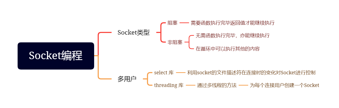 那么如何能够支持多用户呢,单个Socket只能支持一个用户,那我们多创建几个Socket不就好了?那我们如何管理多个Socket呢?有两种方法,多线程或使用select库。