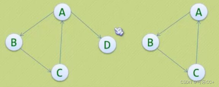 3、下图顶点A的入度是2,出度是1,所以顶点A的度是3。
