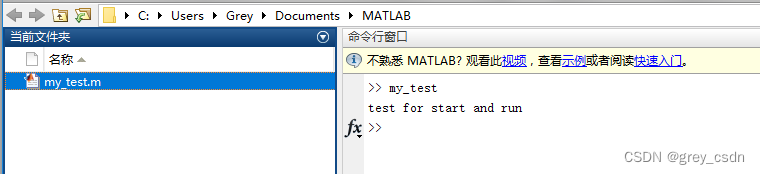 上面的这个目录本身在MATLAB的搜索目录之下,我在这里放一个脚本文件。脚本尝试运行过,可以正常运行并输出一个字符串。
