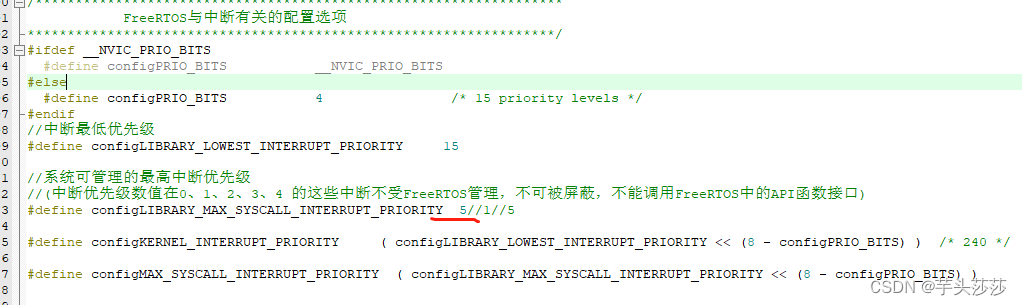 这是FreeRTOS配置文件,这边配置FreeRTOS可管理的中断方位5-15