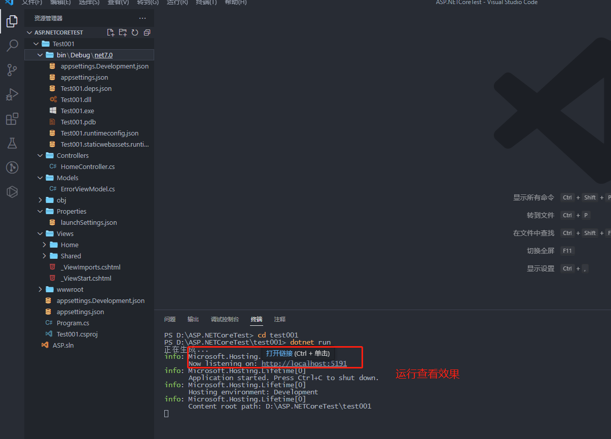 首先要进入应用的.csproj文件目录中,在终端中运行以下命令启动应用程序:
