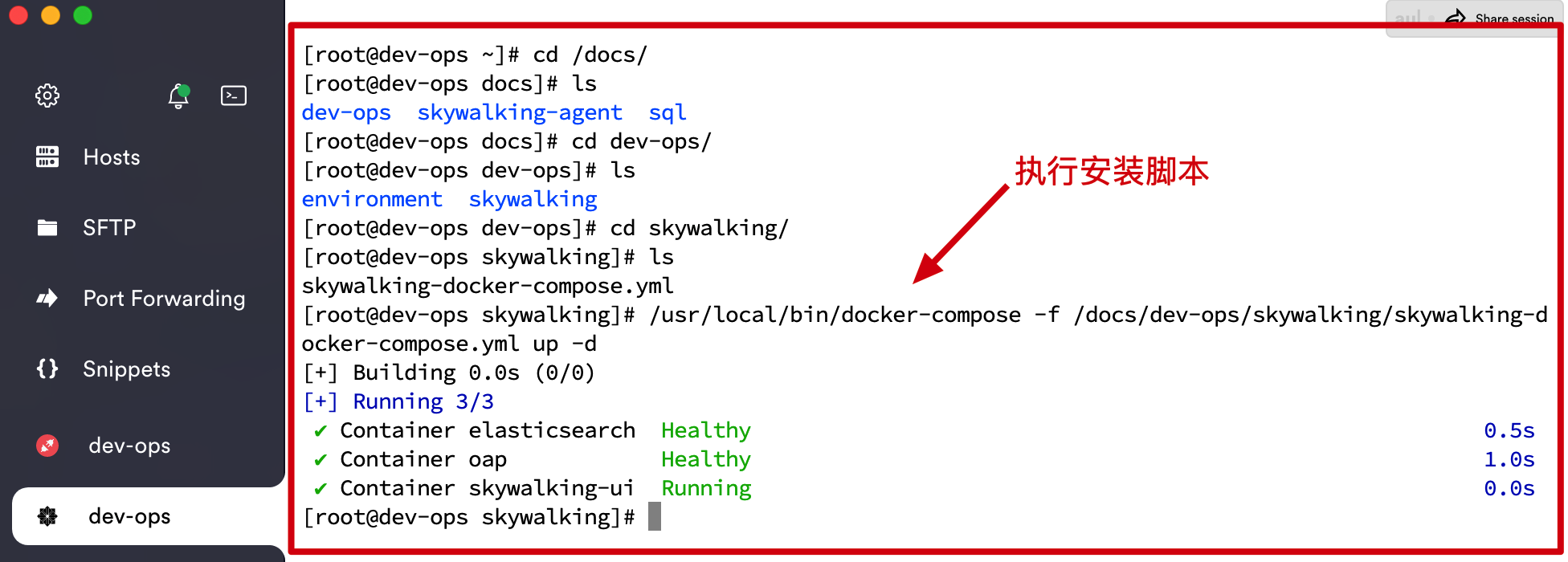[root@dev-ops skywalking]# /usr/local/bin/docker-compose -f /docs/dev-ops/skywalking/skywalking-docker-compose.yml up -d