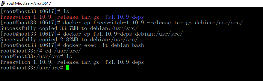 docker cp freeswitch-1.10.9.-release.tar.gz debian:/usr/src/ docker cp fs1.10.9-deps debian:/usr/src/