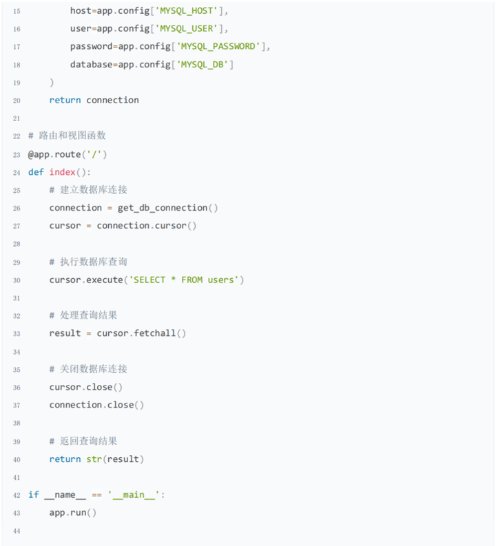 接下来,我们可以定义一个路由和视图函数来处理用户的请求。在这个例子中,我们创建一个简单的首页路由和视图函数: