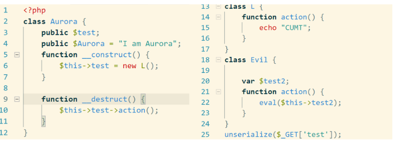 输入的参数的一串被序列字符串,里面创建一个Aurora对象的test变量是一个Evil对象,Evil对象中的test2属性是我们想要执行的系统命令