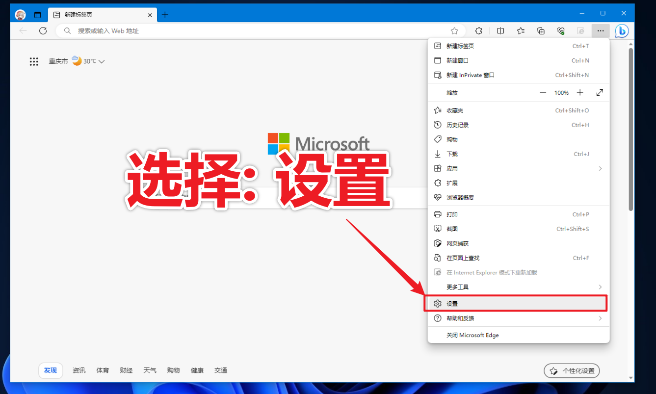 这里我以win10为例, 打开你当前最新安装的Edge浏览器, 并且切换到设置选项