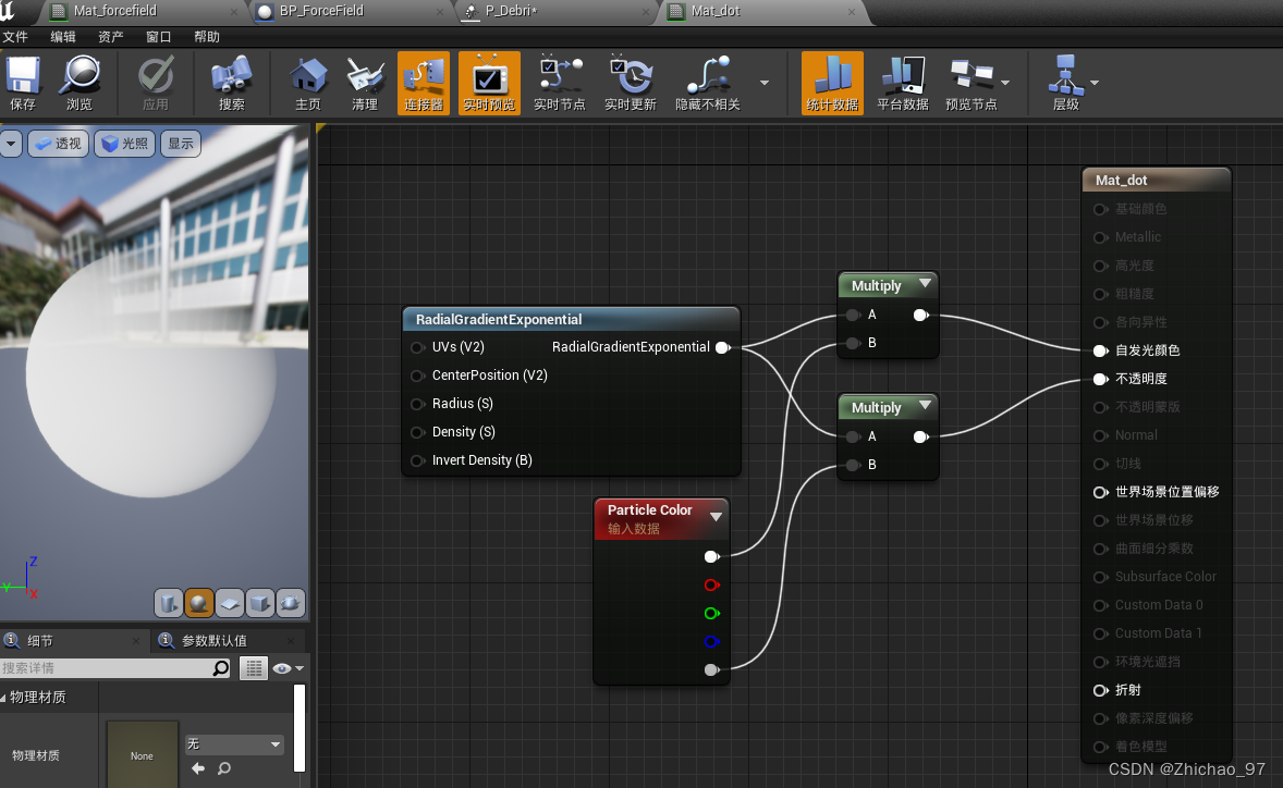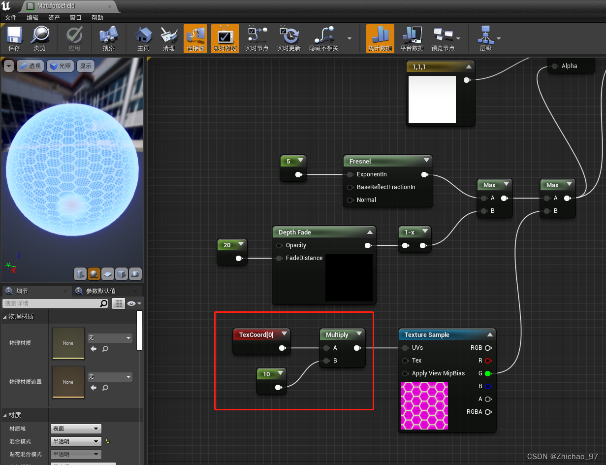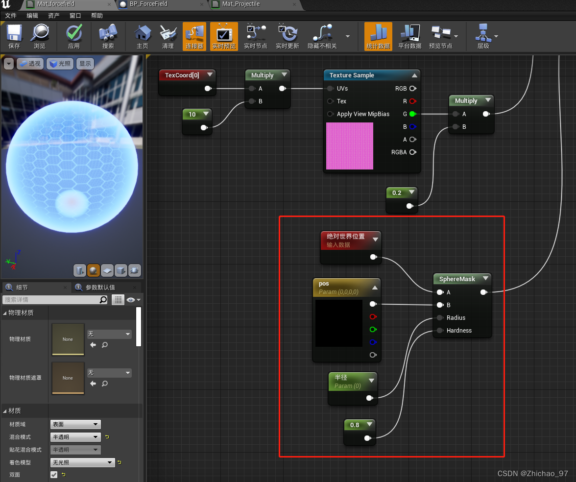 1. 打开材质“Mat_forcefield”,添加如下节点