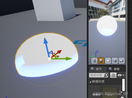 再添加一个球形的静态网格体,调整缩放使其正好能够被球形碰撞组件包裹