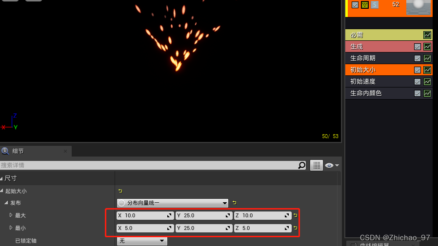 如果觉得粒子发射后下降的太快了,我们需要将两个发射器中的“加速度/生命”模块中的如下值有-20000改为-5000