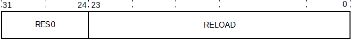 重载值寄存器虽然是一个32bit的寄存器,但是鉴于滴答定时器的设计只有24位的计数值,因而此寄存器只有低24bit有效,高8bit保留,如下图所示: