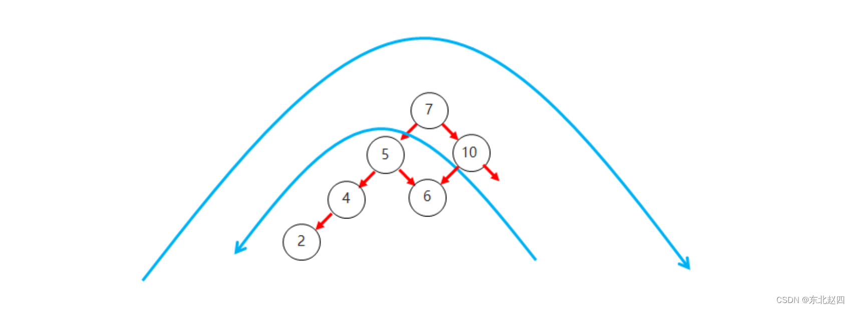 右子树上所有节点的值都大于根节点的值