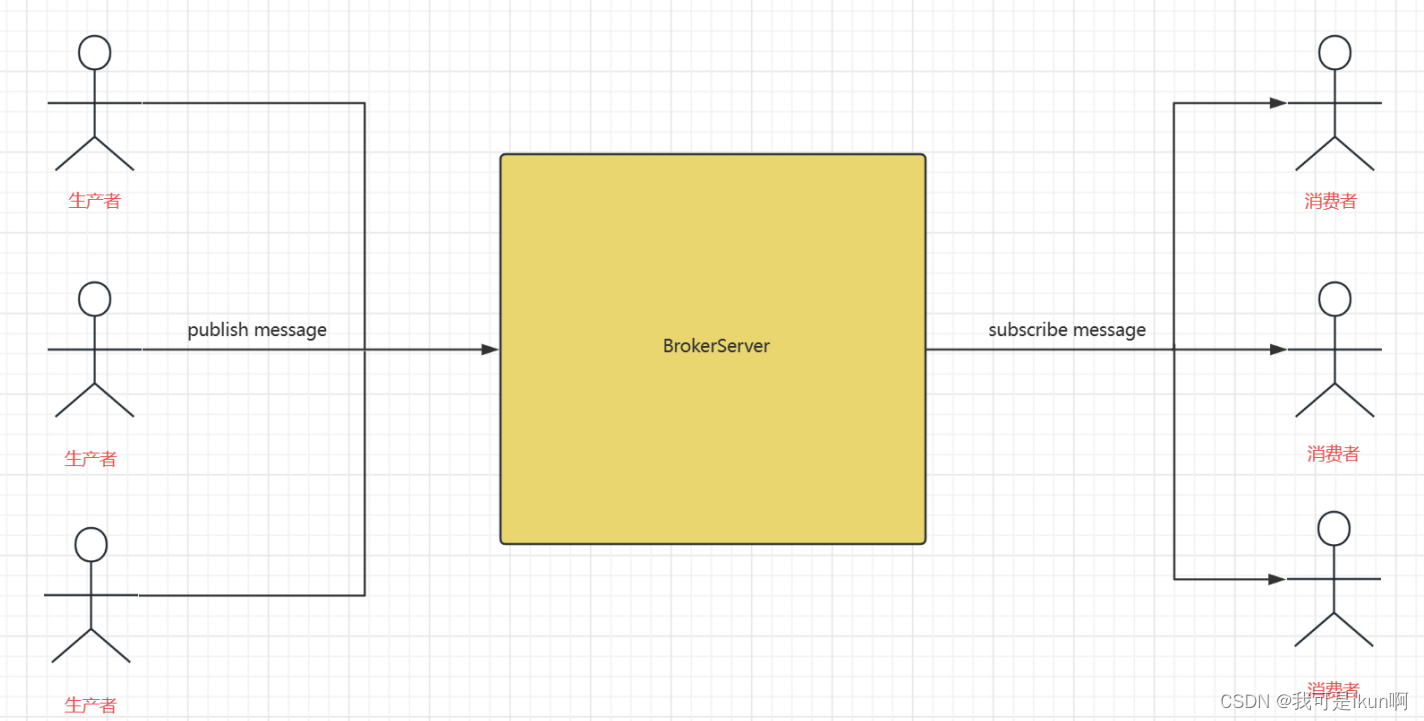 其他的服务器(生产者/消费者)通过网络,和咱们的 BrokerServer 进行交互的。