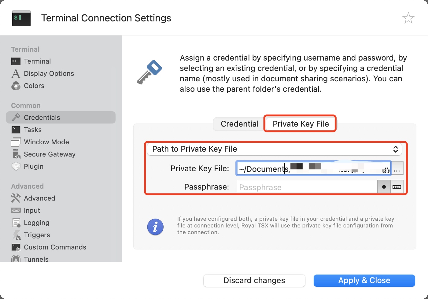 - 然后再同时去设置“Private Key File”指向你的ssh私钥即可。