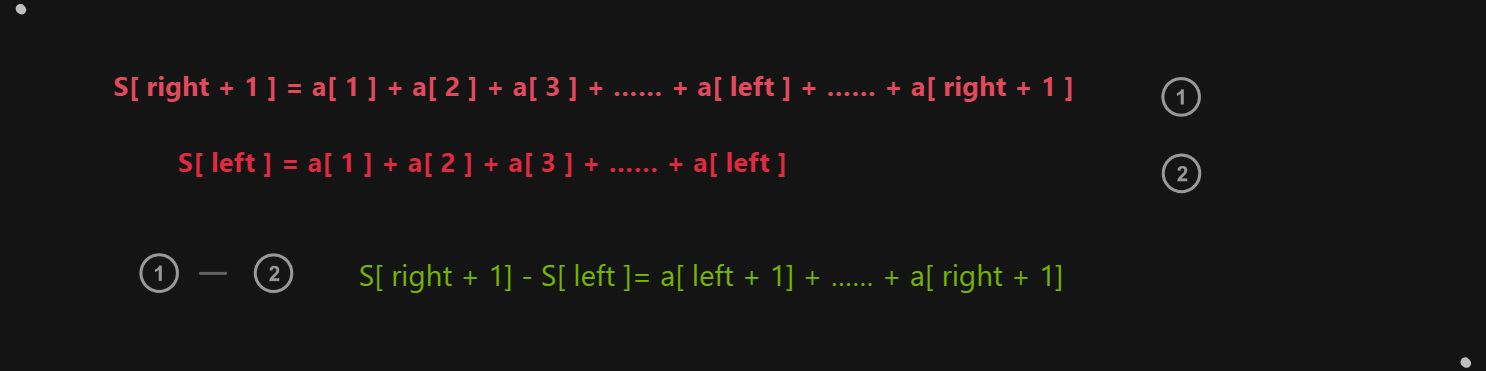 left和right值是下标时,对应的查询操作也要少许改动cout << S[right + 1] - S[left];