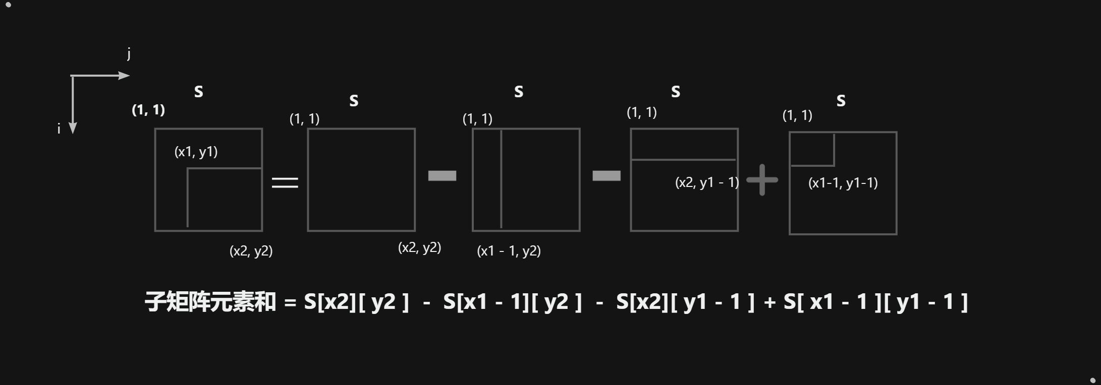 S[i][j] = S[i - 1][j] + S[i][j - 1] - S[i - 1][j - 1] + matrix[i - 1][j - 1];
