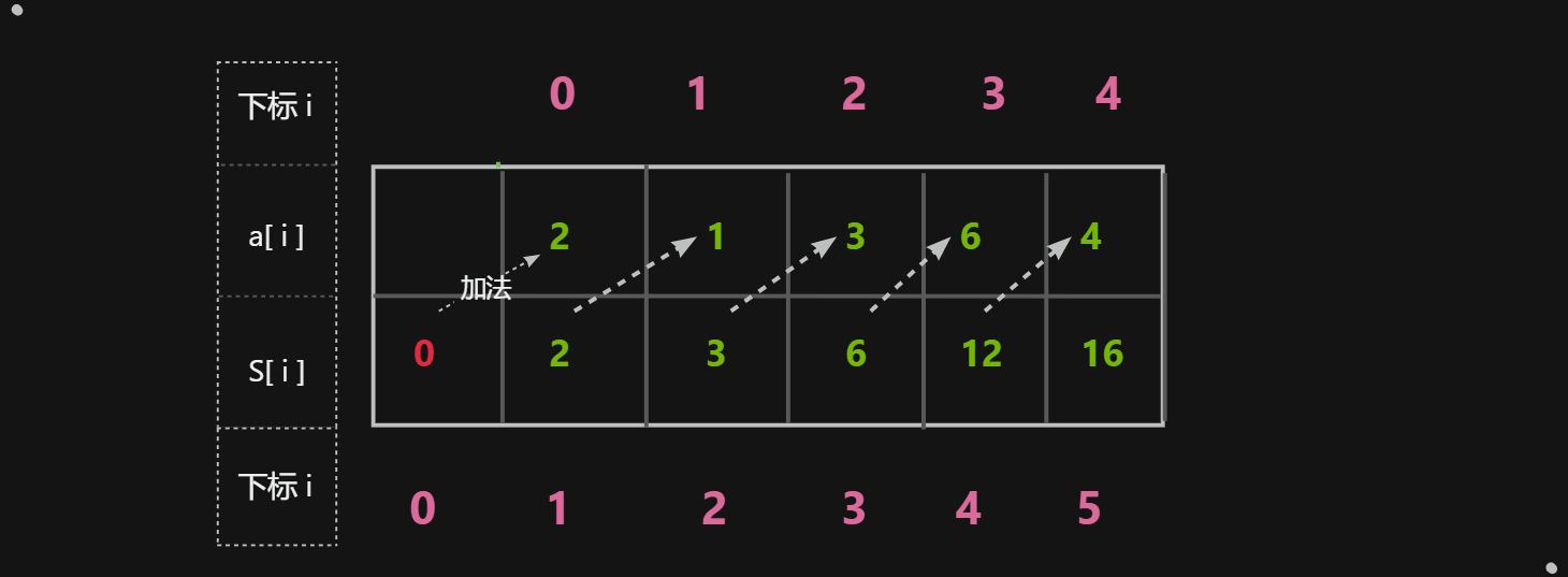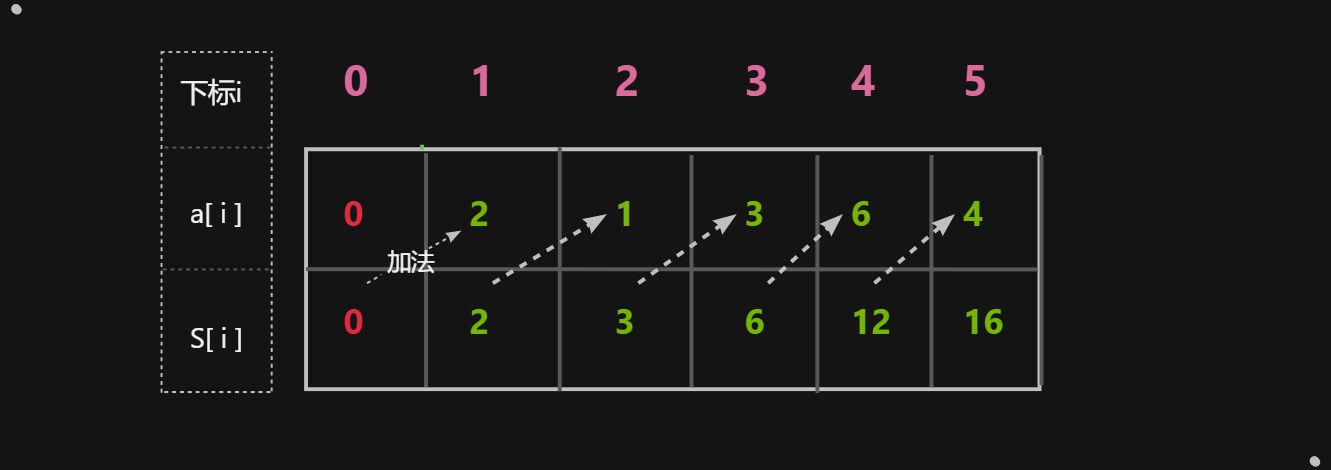 for (int i = 1; i <= n; i ++ ) S[i] = S[i - 1] + a[i];