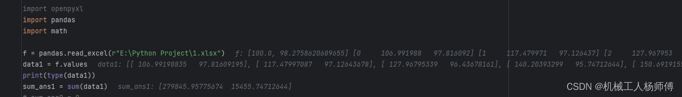 - f = pandas.read_excel(r"E:\Python Project\1.xlsx")