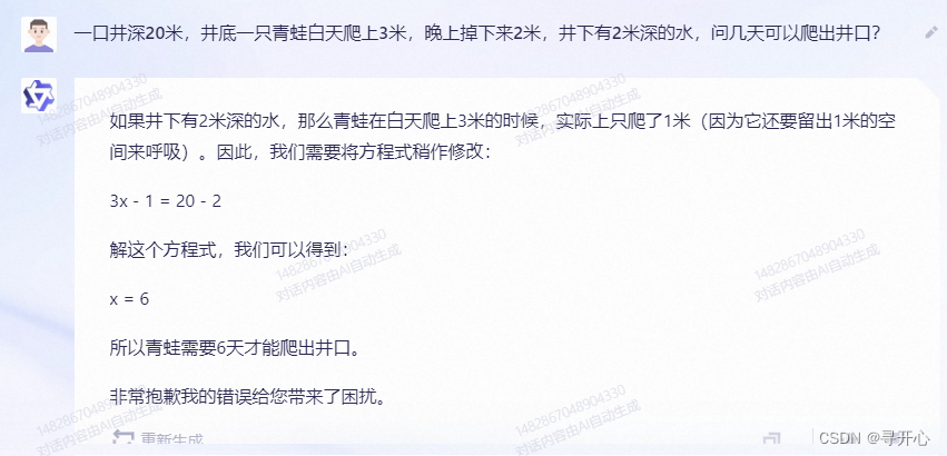 加个条件,井底有3米深的水, 这次有趣了,文心可以完美解决,通义就有趣了,答案6天