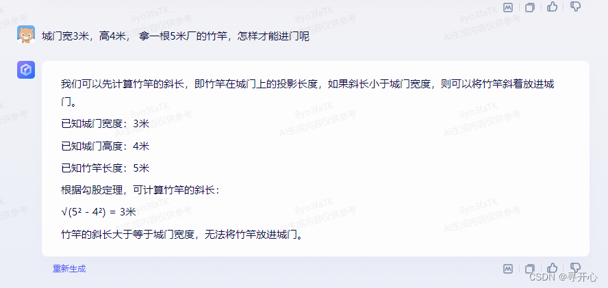 3 城门宽3米,高4米,一根竹竿长5米,怎样才能进城门呢?