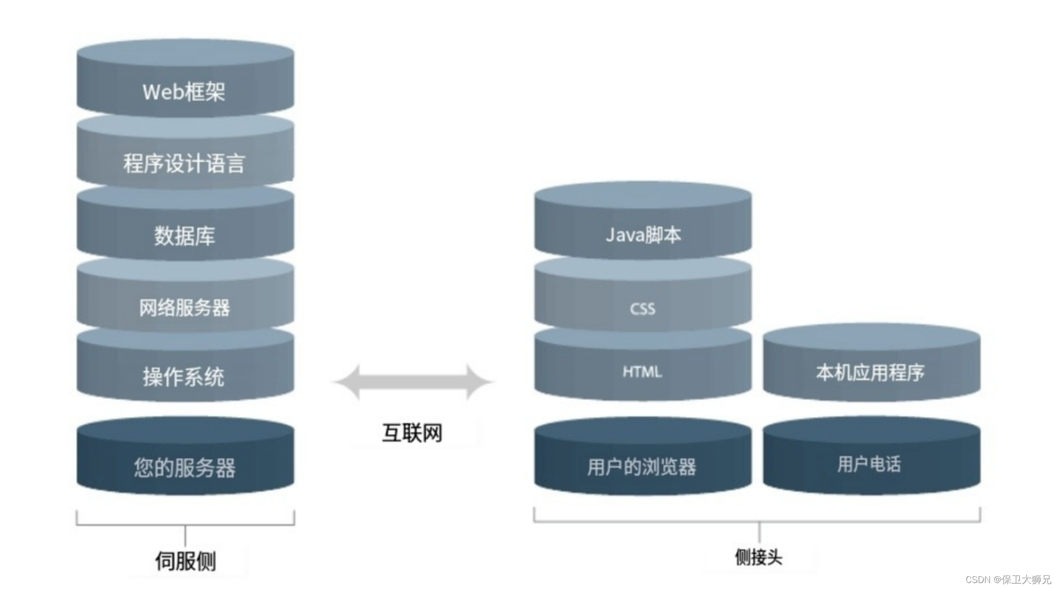 所谓网络是指服务器端和客户端之间的信息交换是通过互联网完成的。
