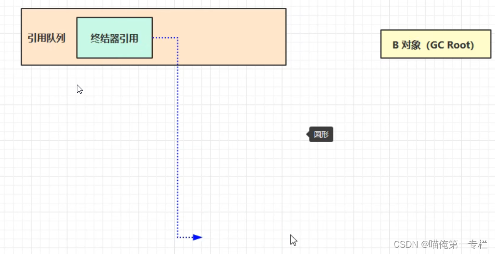 实线箭头表示强引用,虚心线表示软弱虚终结器引用