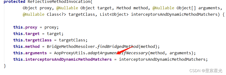 2 该方法通过获取调用方法对应的通知信息,然后构建一个ReflectiveMethodInvocation实例,最终调用委托给了ReflectiveMethodInvocation#proceed方法