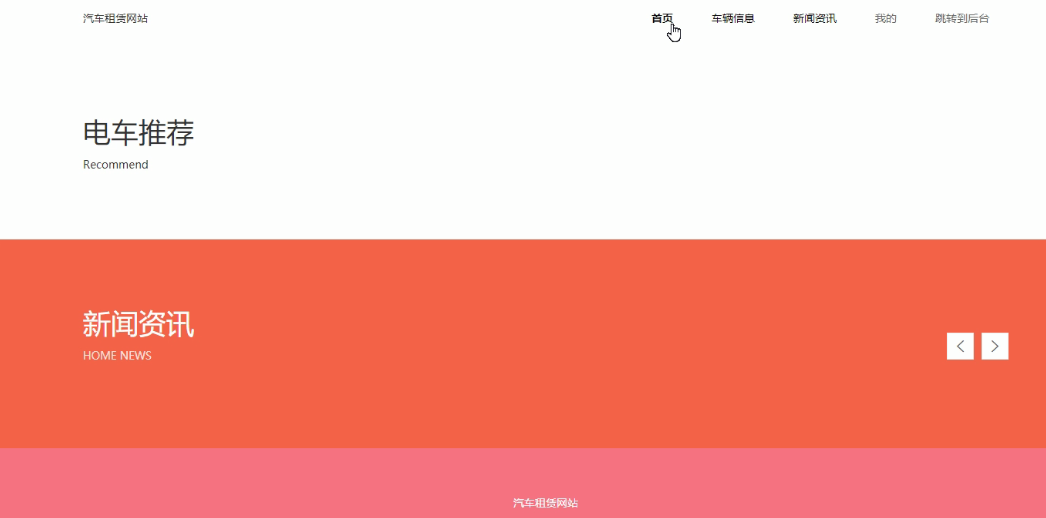 本界面分为图片、文字、标题、按键、列表等。首页为用户的主要操作界面,可以在本界面里进行汽车的租赁和浏览信息。首页界面的实现效果如下图5.4所示: