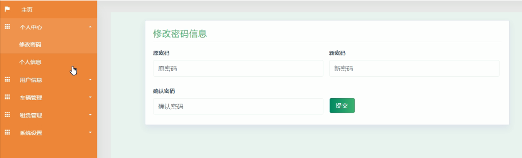 用户在用户中心里可以管理租赁信息、个人信息。用户中心功能的实现界面如下图5.9所示: