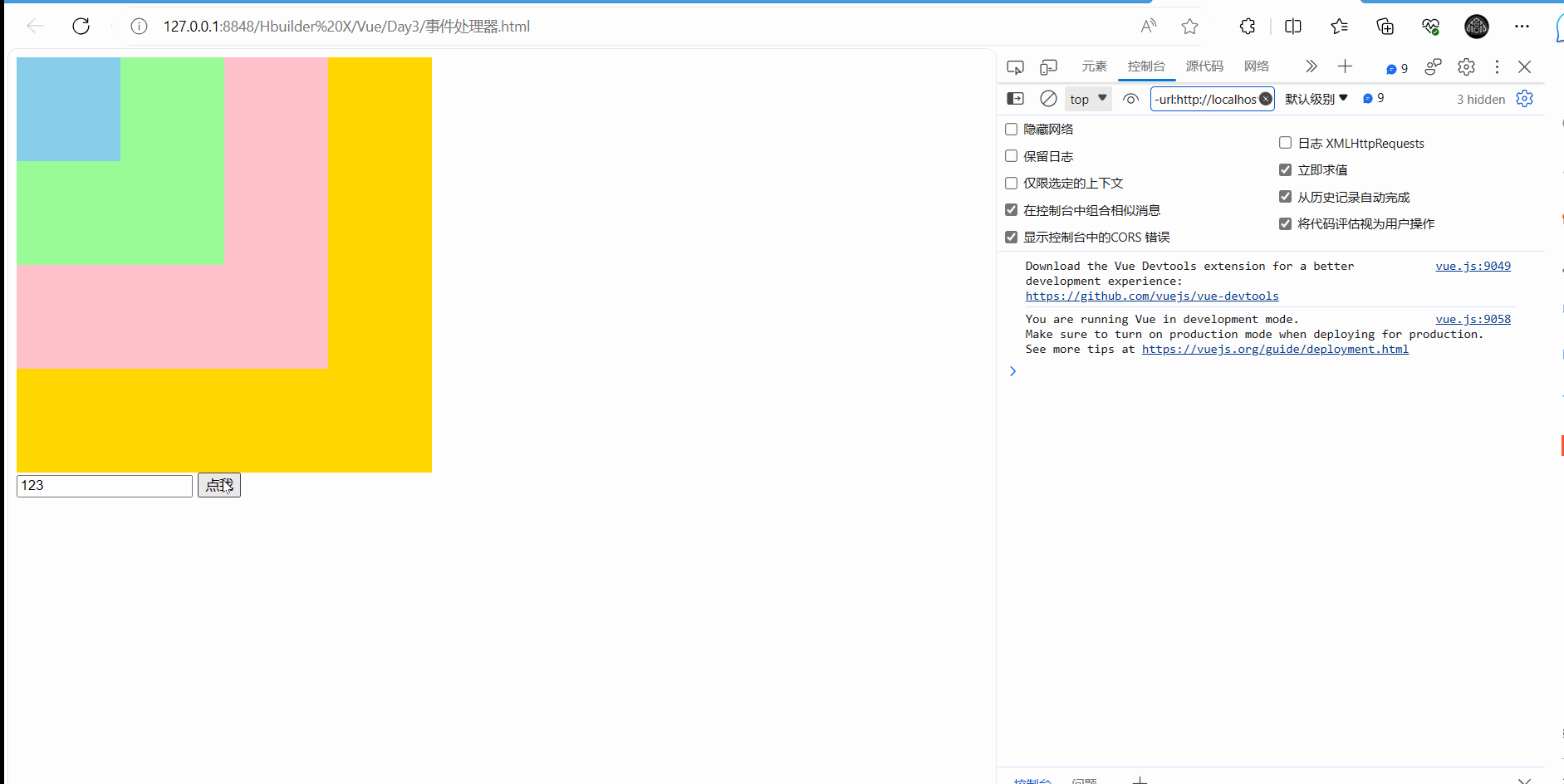 - <div class="three" @click="fun3">