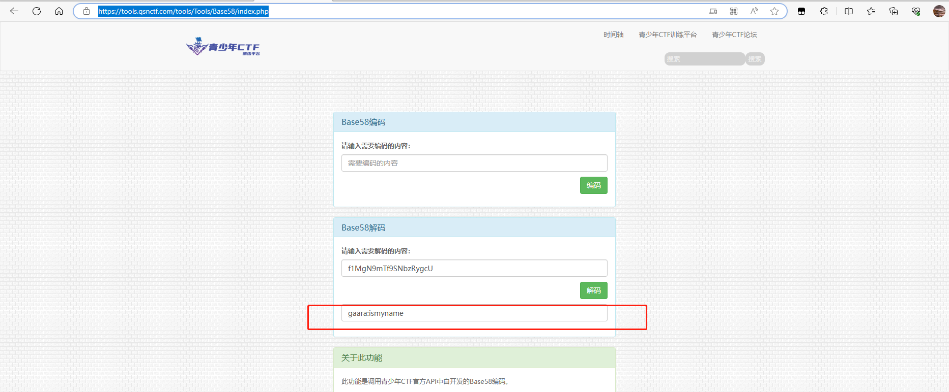 百度了一个解密工具进行解密 https://tools.qsnctf.com/tools/Tools/Base58/index.php