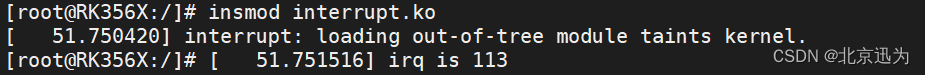 在上图中,可以看到打印中断处理函数中添加的打印“This is test_interrupt”和软中断处理函数中添加的打印“This is testsoft_func”