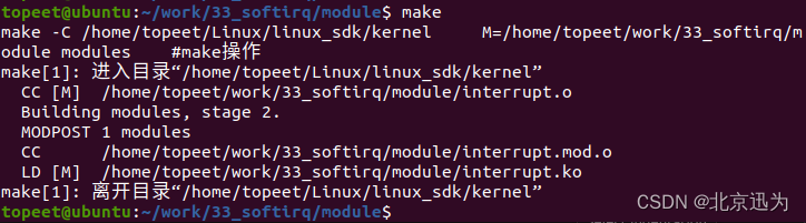 编译完生成interrupt.ko目标文件,如下图(图42-5)所示: