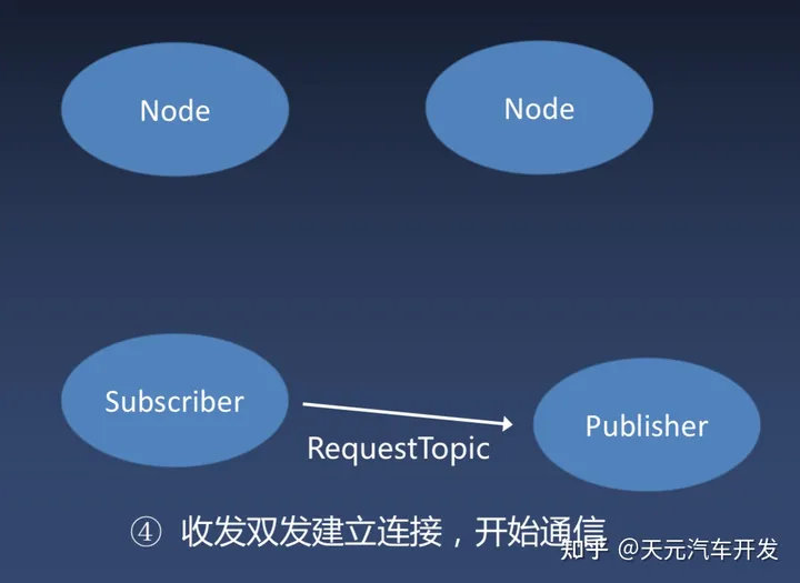 ROS系统中包含了一个主(Master)节点。主节点使得其他节点可以查询彼此以进行通讯。所有节点都需要在主节点上进行注册,然后就可以与其他节点通讯了。如下图所示: