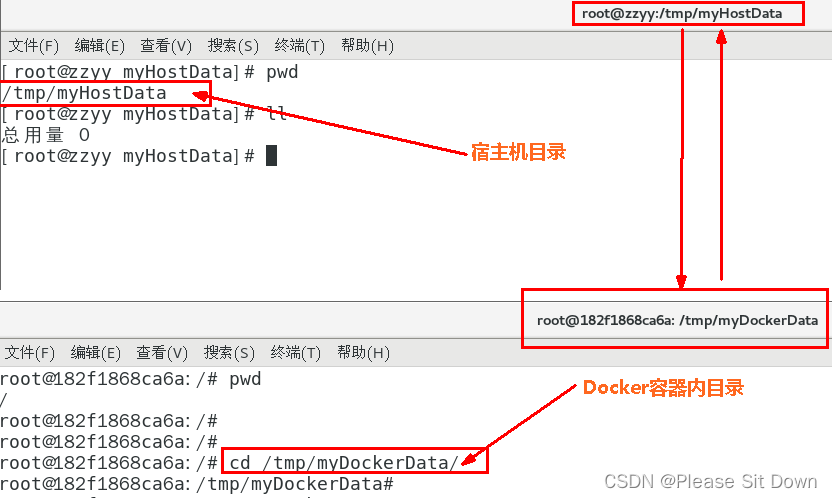 公式:docker run -it --privileged=true -v /宿主机目录:/容器内目录 镜像名 /bin/bash