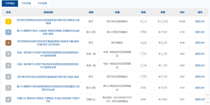 从爆款商品数据来看,我们也能理解为何“张核子”一转行就要从卖方便米饭做起。因为方便米饭是目前京东销量排名第一的预制菜。