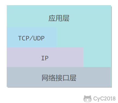 它只有四层,相当于五层协议中数据链路层和物理层合并为网络接口层。