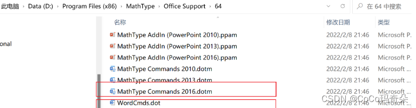 2和3文件 文件路径 D:\Program Files (x86)\MathType\Office Support\64