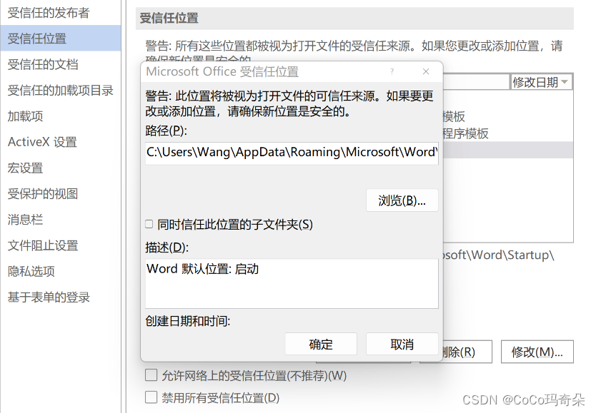 1.打开word2016,选择word2016选项,受信任位置,找到图中的路径,全选拷贝下来等会儿有用,这个路径得自己去找