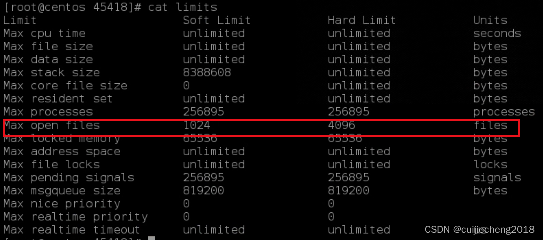 可以看到该进程最大的文件打开数量,软限制是1024,硬限制是4096。关于软限制和硬限制的区别: