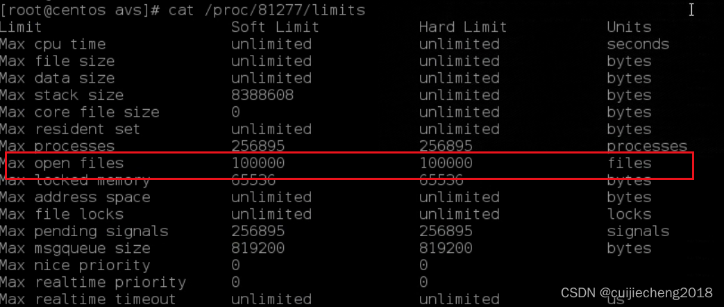cat /proc/进程id/limits