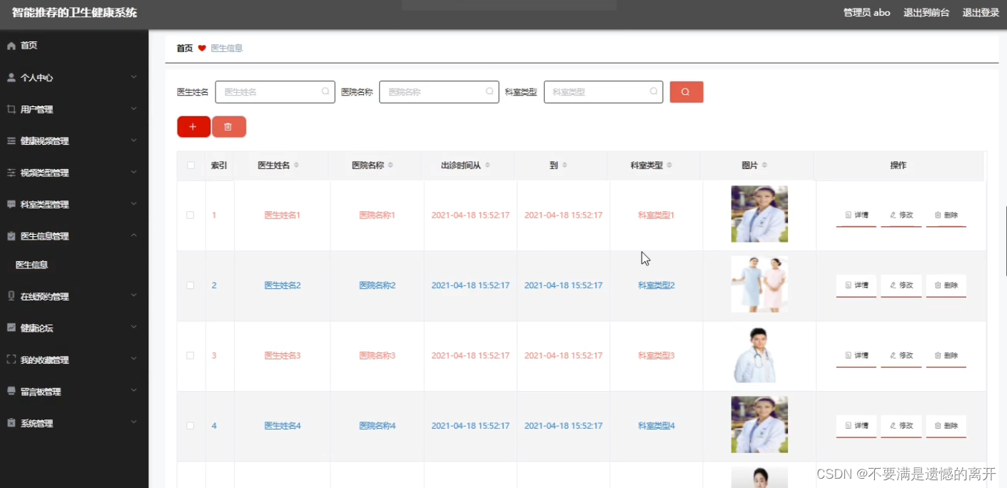 管理员可以对医生信息进行添加,修改,删除以及查询操作。