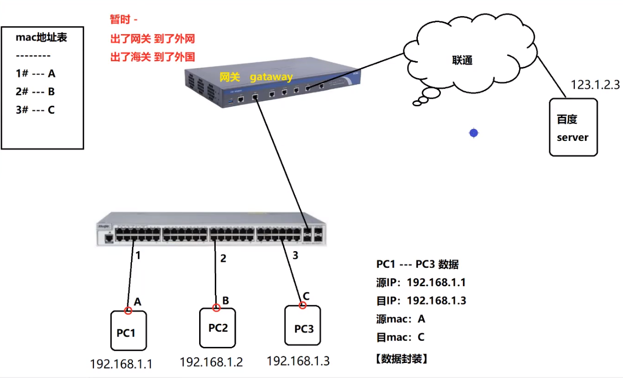-- 局域网 - 交换机 - 转发相同的ip地址段 - 查mac地址表