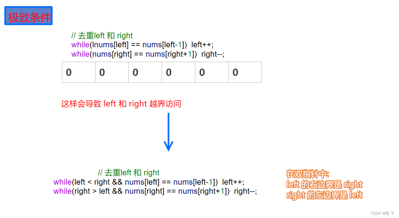 这一题就跟上面的题目相似, 思路也很相似: 排序 + 固定两个数, 双指针优化 + 去重. 当然, 我们这里的去重逻辑也是 缩小空间去重