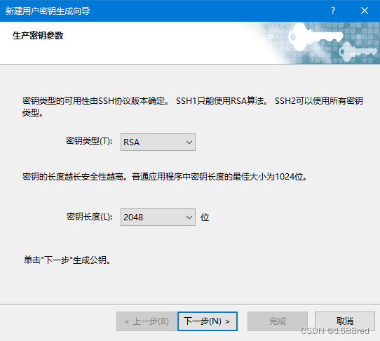 按默认参数,直接单击“下一步”按钮,直到如下图所示的用户密钥信息对话框。
