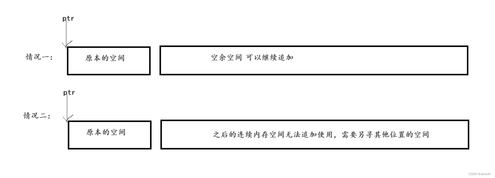 - 这个函数在调整原内存空间大小的基础上,还会将原来内存中的数据移动到新的空间。